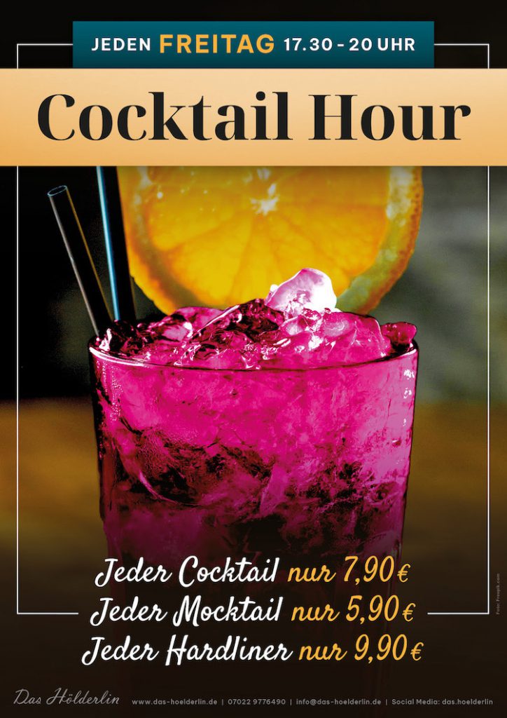 Das Hölderlin ist aber nicht nur ein Restaurant mit einer reichhaltigen Speisekarte, sondern auch eine Cocktailbar mit großer Auswahl an Drinks.
